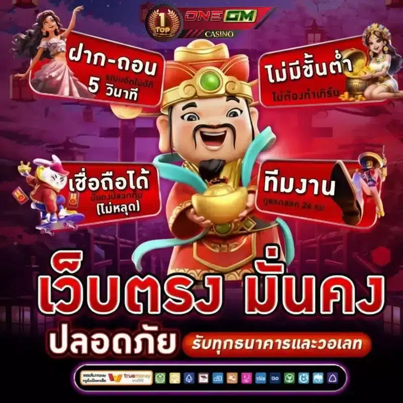 จุดเด่นที่น่าสนใจของ ONEGM คือระบบฝาก-ถอนที่ไม่มีขั้นต่ำ ทำให้นักพนันสามารถเริ่มต้นเดิมพันได้ตามงบประมาณที่มี โดยไม่ต้องกังวลเรื่องเงินขั้นต่ำในการเติมเครดิต นอกจากนี้ยังมีระบบฝาก-ถอนอัตโนมัติที่รวดเร็ว ทำรายการได้ภายในไม่กี่วินาที พร้อมรองรับธนาคารชั้นนำทุกแห่ง